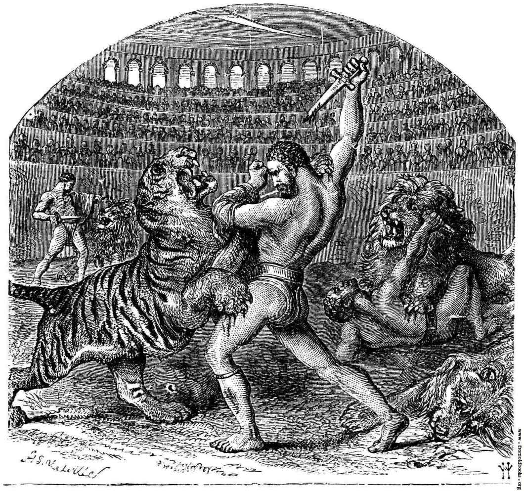Featured Image: Combat of Gladiators with Animals, D. Rose, Edited by H. W. Dulcken: “A Popular History of Rome” (1886)