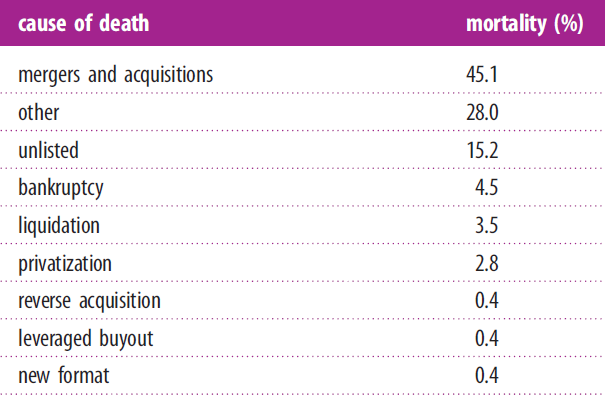 Nice, but for a company listed in the US stock market “It doesn’t matter if you’re selling bananas, airplanes, or whatever,” Publicly traded companies die off at the same rate, regardless of the firm’s age or what sector it’s in.