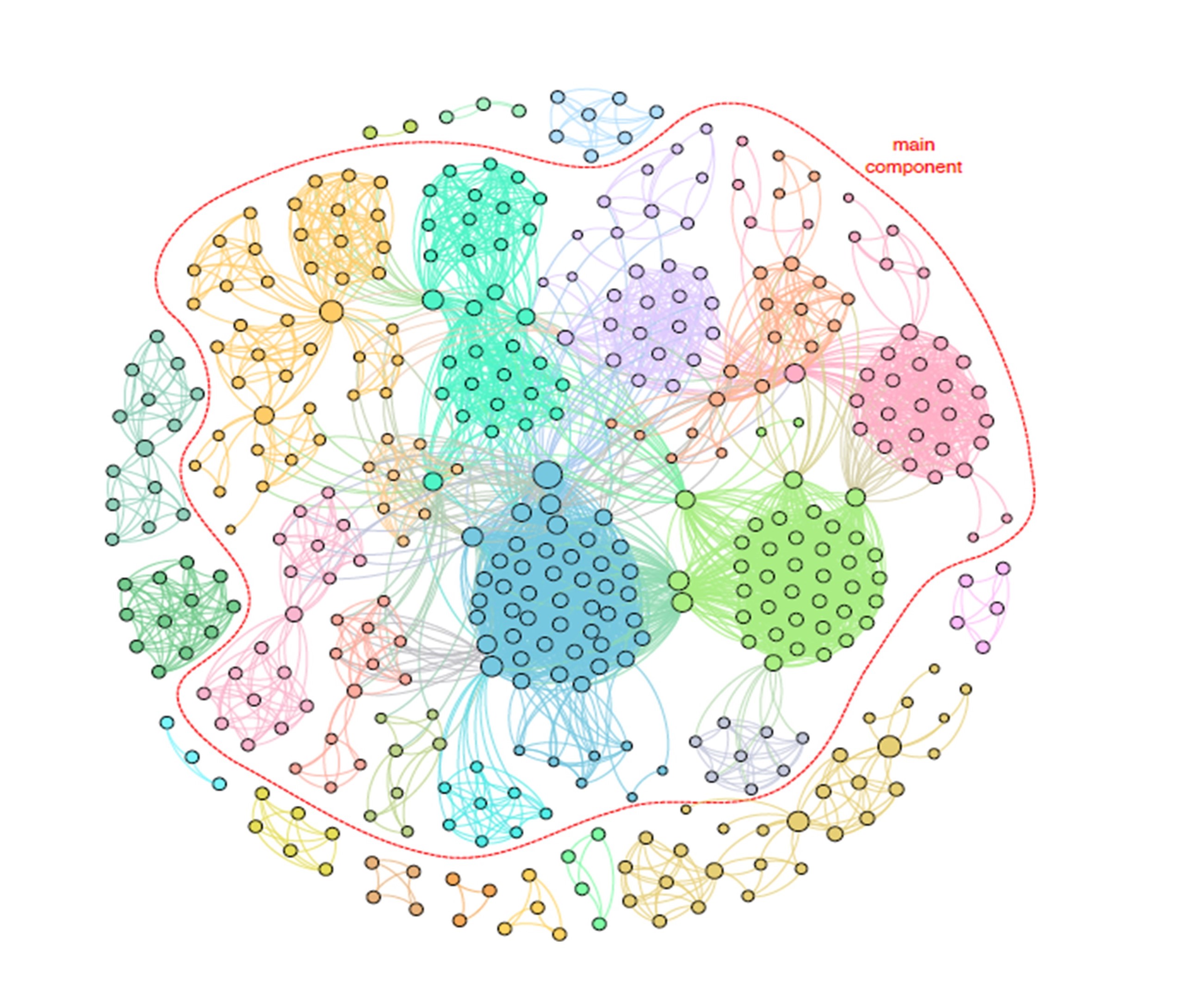 Featured Image. ibid. Fig 2. Complex network of people involved in corruption cases in the dataset (from 1987 to 2014). Each vertex represents a person and the edges among them occur when two individuals appear (at least once) in the same corruption scandal.