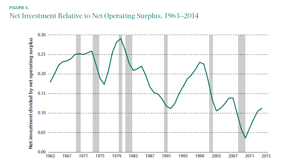 Firm concentration is rising, particularly in retail and finance. Concentration is high in markets with large returns to scale and network effects. Mergers and acquisitions have become more common Common ownership (the extent to which ownership of competitors overlaps) may increase effective market concentration. The investment rate has fallen by more than one-third since the early 1960s.