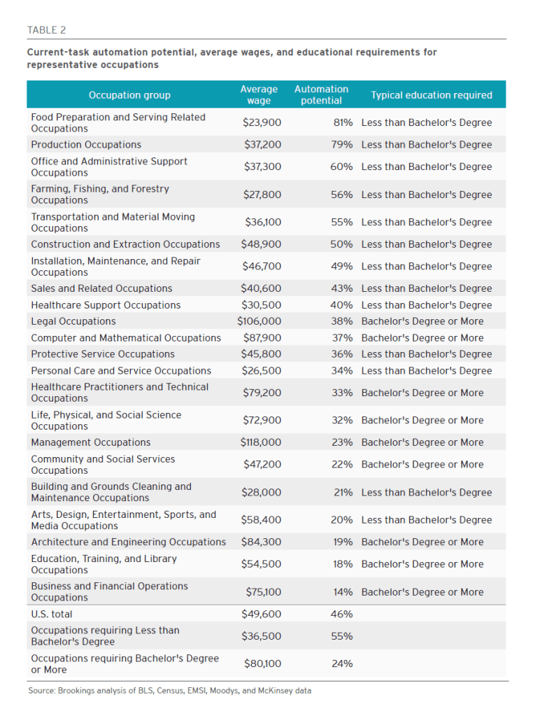 Here are their estimations for current-tasks automation potential (published one year ago); very much in line with the famous study by Carl Benedikt Frey and Michael Osborne, published in 2013.