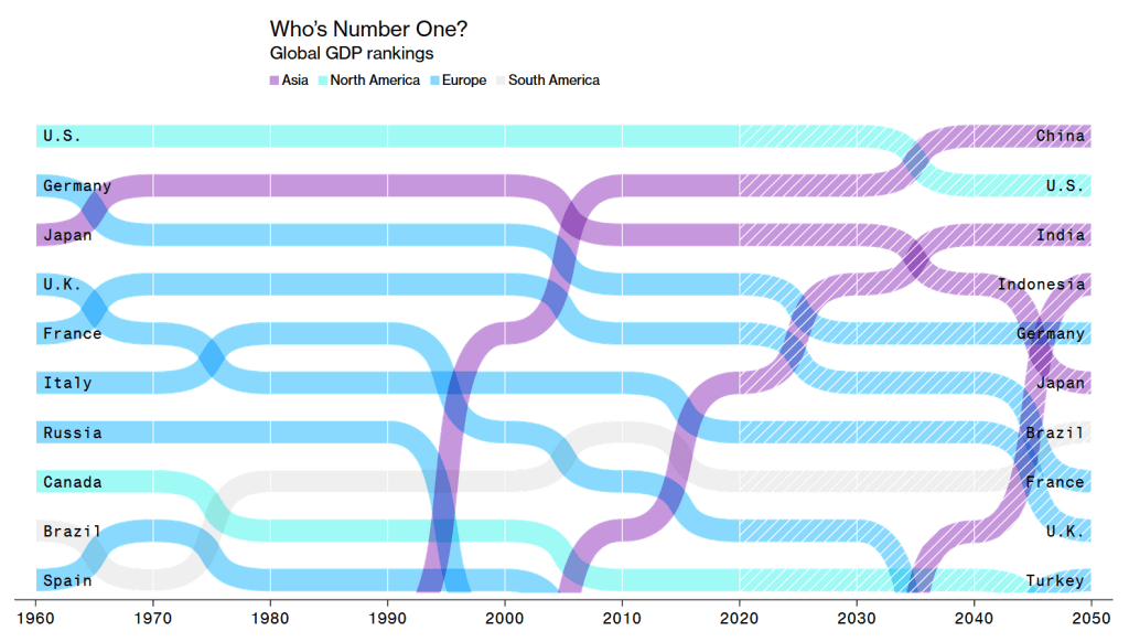 The rise of China to #1 world superpower is not a matter of if but a matter of when. Bloomberg Economics forecasts that China will have overtaken the U.S. by 2035 to become the world’s biggest economy and perhaps also its most powerful political actor.