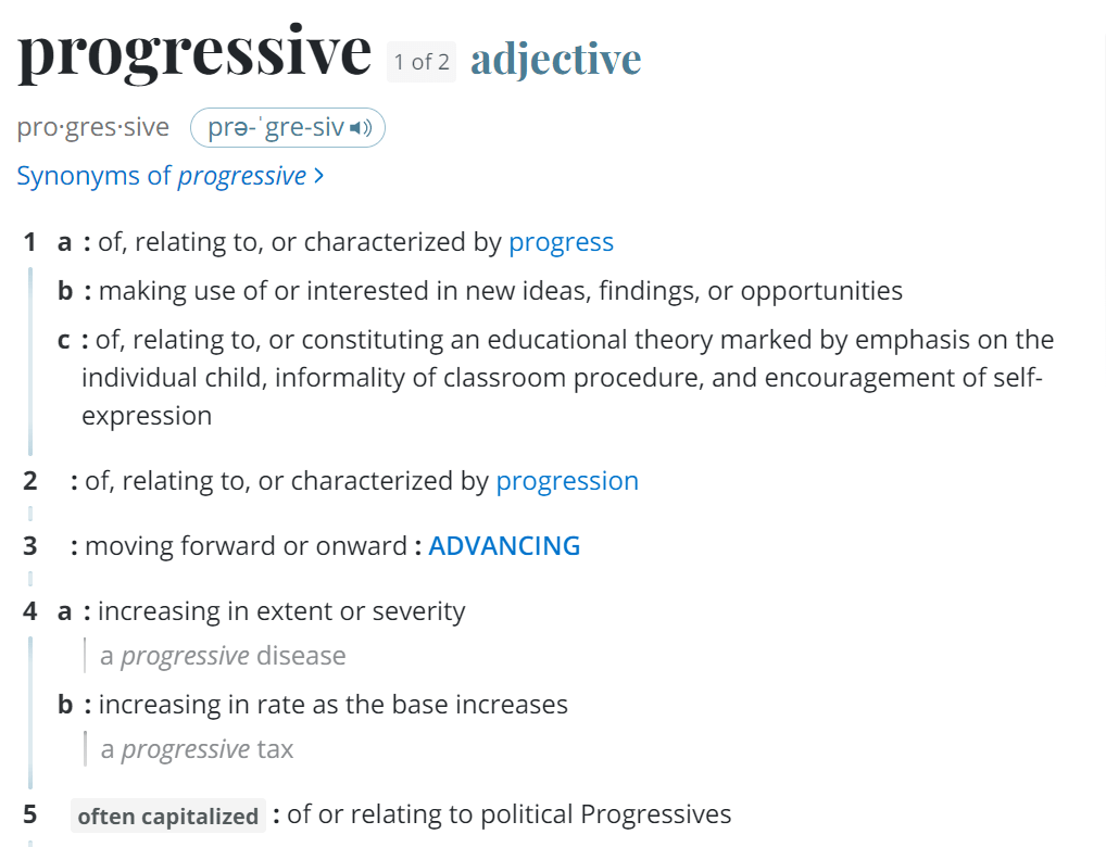 Let me recall the meaning of progressive (via Merrian Webster):