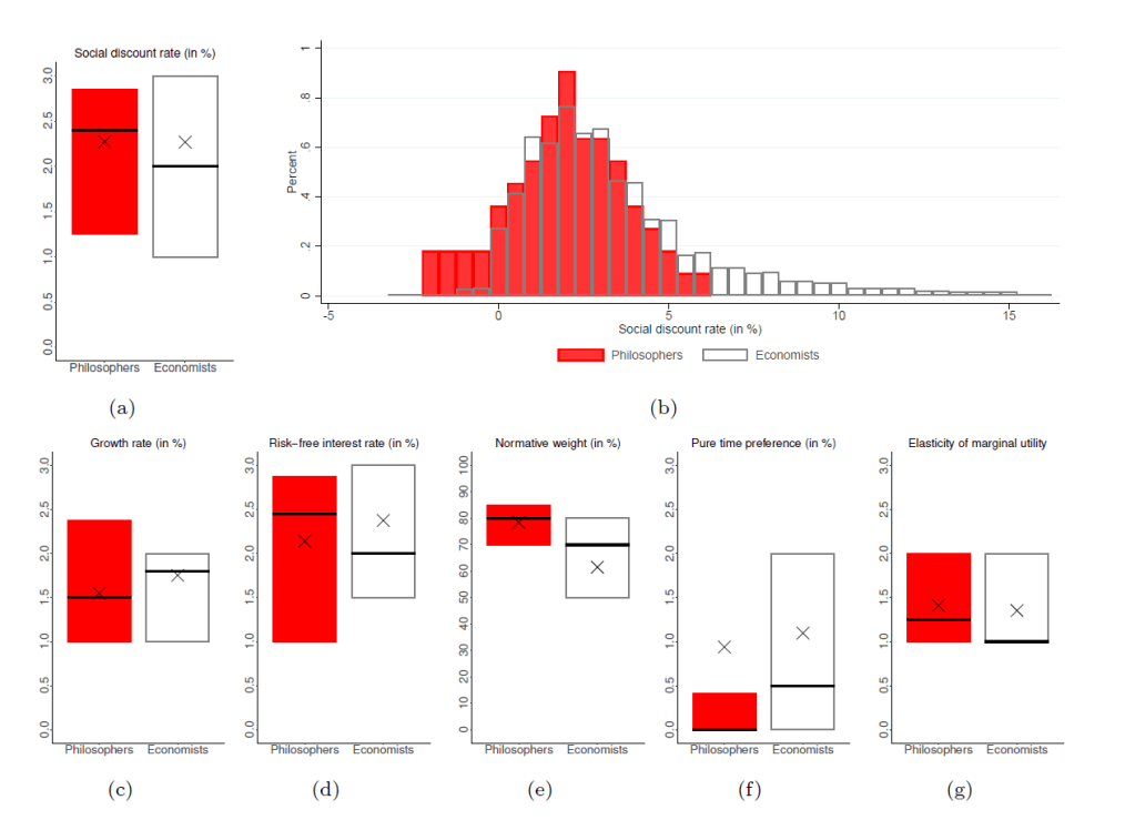In a paper published in nature climate change last may, researchers report the views of philosophers, who are most trained in ethical matters. Interestingly they find considerable agreement between philosophers and economists for a long-term real SDR of 2%, although philosophers¡ motives are complementary to those of economists and they recommend alternative approaches to current climate policy analysis.