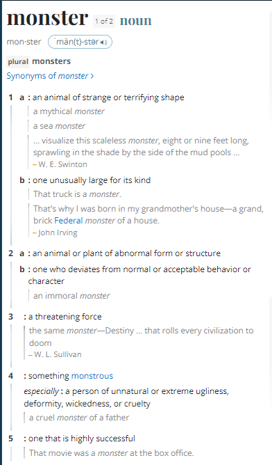 (1) Please do notice that both monster and killer are polysemic words meaning one thing and the just opposite in wow!