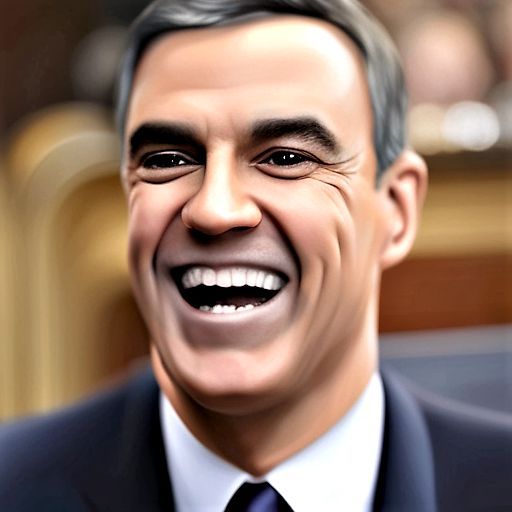 Featured Image: Dream Studio, Spanish prime minister Pedro Sanchez laughing out loud.