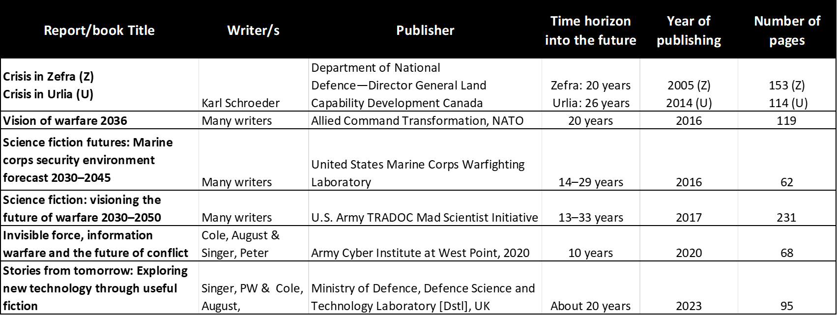 Then they show those simple ideas in action with six examples of reports/books by military or defence organizations which have used science fiction to imagine war’s future over the last 20 years: