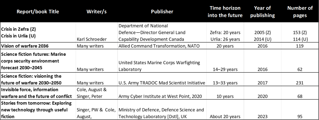 An interesting article by Elina Hiltunen and Aki-Mauri Huhtinen: Science fiction in military planning—Case allied command transformation and visions of warfare 20361.