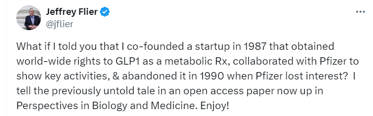 (1) Jeffrey Flier, ‘Drug Development Failure: How GLP-1 Development Was Abandoned in 1990’, Perspectives in Biology and Medicine, no. 1 (2024), https://muse.jhu.edu/pub/1/article/936036.