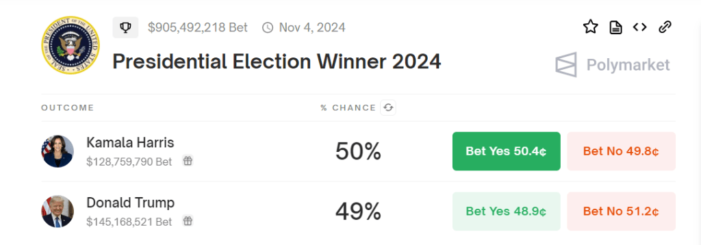 And here is an example (yes, THE question)4: Will Trump win the 2024 US presidential election?