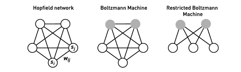 John Hopfield created a structure that can store and reconstruct information (Hopfield network or associative memory). Geoffrey Hinton developed a stochastic extension of Hopfield’s model called the Boltzmann machine. Both the Hopfield model and the Boltzmann machine are recurrent neural networks, which were soon used to develop successful applications, including pattern recognition in images, languages and clinical data.
