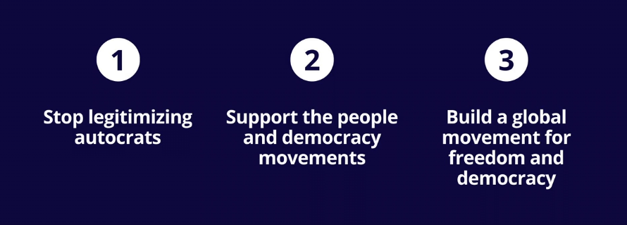 - the first thing I believe is to assume that we need to take the offensive. Stop legitimizing autocrats. Autocrats today are comfortable. They do business with governments, with businesses. We need to think of smart sanctions, of ways to make them accountable for the violations of human rights.