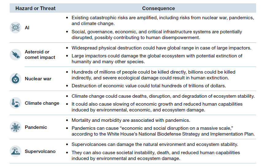 (3) Henry H. Willis et al., Global Catastrophic Risk Assessment (Santa Monica, CA: RAND Corporation, 2024), https://doi.org/10.7249/RRA2981-1.