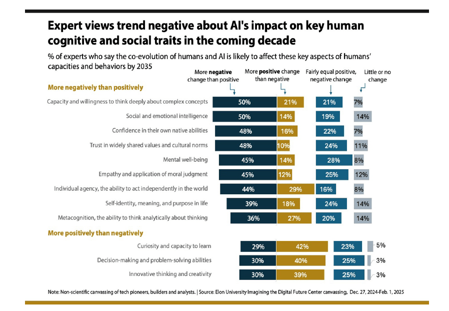 Global tech experts are concerned that our adoption of AI systems over the next decade will negatively alter our sense of purpose and affect how we think, feel, act and relate to one another. Some hope for a positive influence on humansβ curiosity, decision-making and creativity.