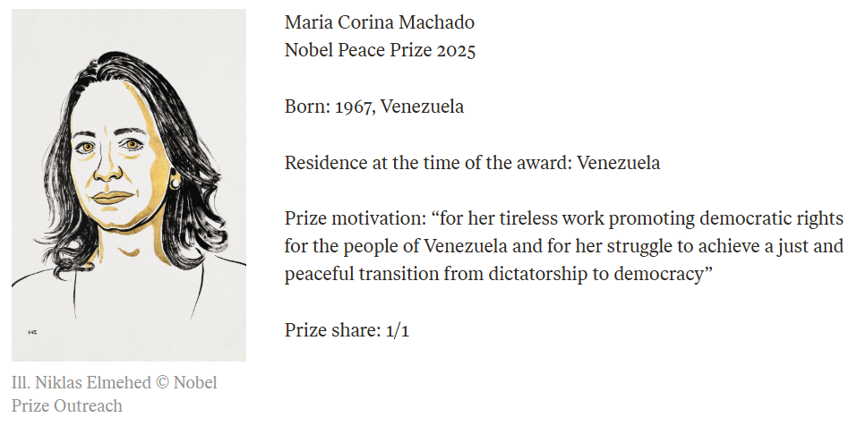 Featured Image: Maria Corina Machado, Nobel Peace Prize 2025