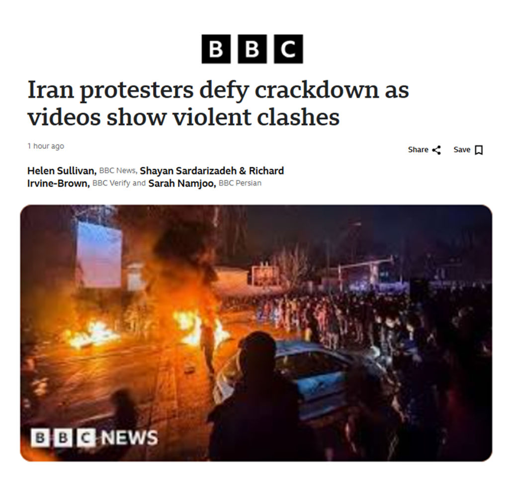 Iran protesters defy crackdown as videos show violent clashes. Iran has warned it will retaliate if attacked by the US, as protesters defied a deadly government crackdown on Saturday night. BBC